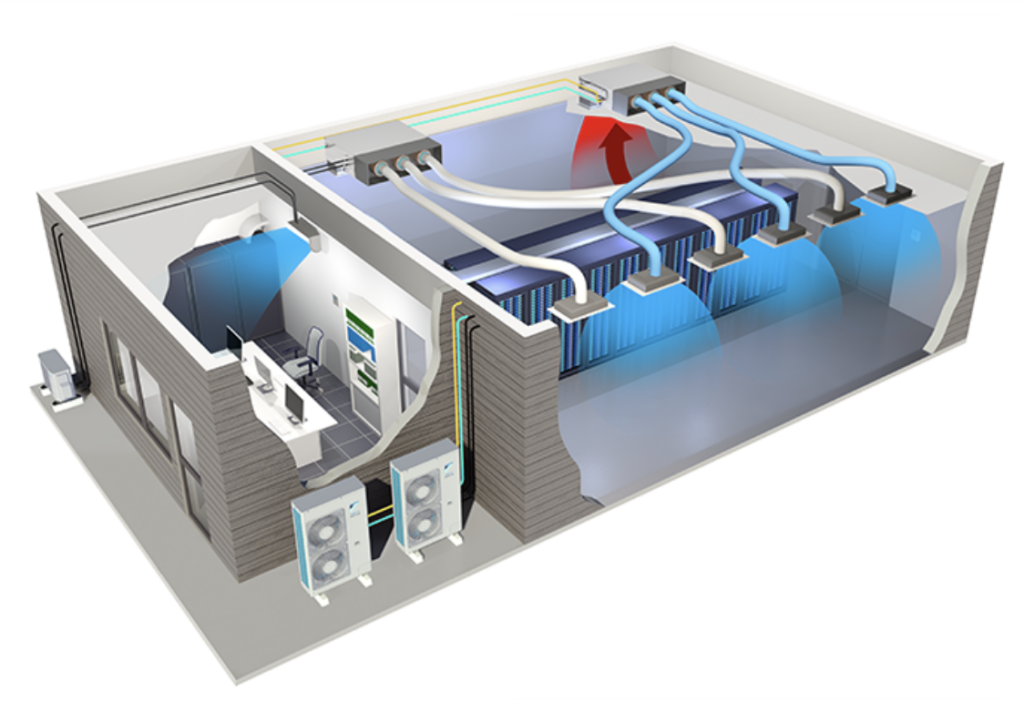 Le refroidissement technique n’est pas nécessaire uniquement pendant les heures de bureau. Les centres de données et les salles de serveurs nécessitent un conditionnement d’air 24/7 dans toutes les conditions de fonctionnement.